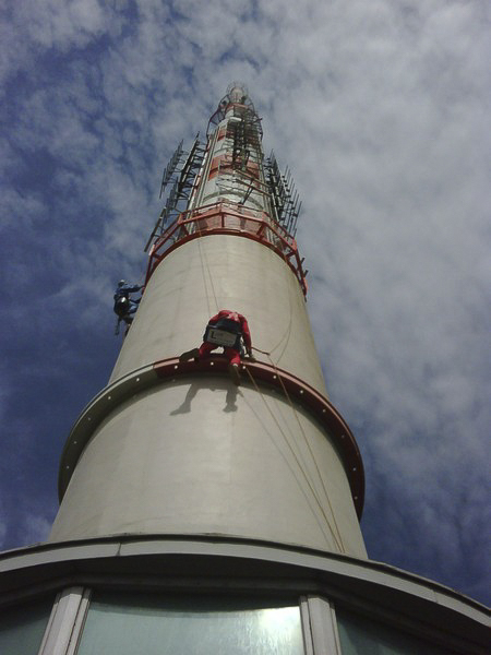 Unsere Bergsteiger erledigen sämtliche gerüstlose Höhenarbeiten schnell, effizient und in bester Qualität. Dort, wo Gerüste nur mit hohem Aufwand oder gar nicht aufgestellt werden können, sind die "Alpinisten" gefragt.